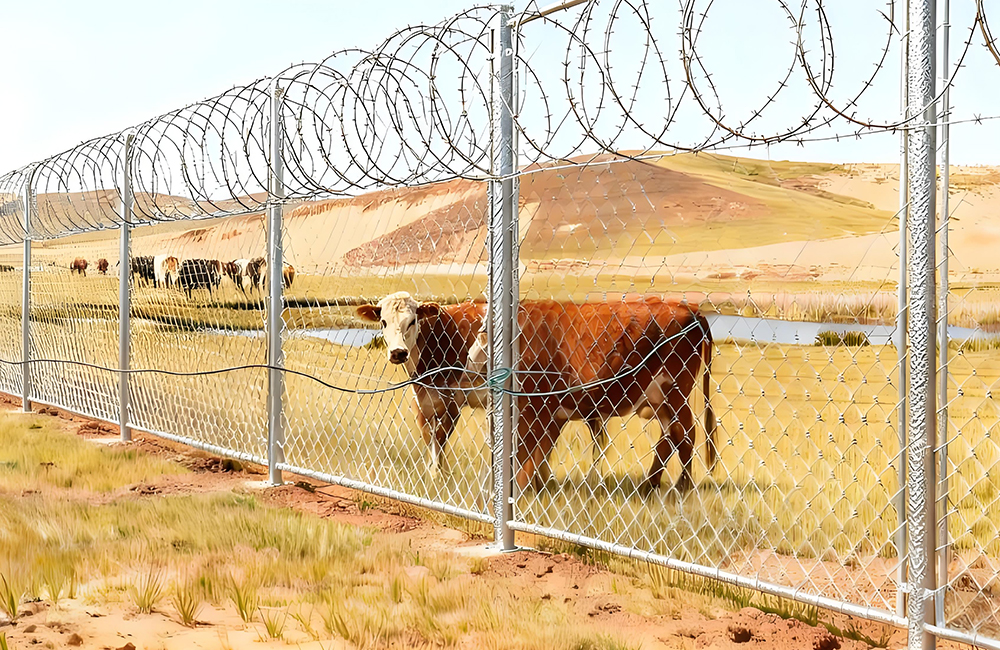 To withstand the harsh conditions of grassland environments, the fence’s galvanized coating is treated with a passivation process, which enhances its UV resistance by 50% and extends its service life to over 15 years. When paired with high-zinc-content barbed wire rolls made from 2.8mm-diameter steel wire, this integrated fence system delivers a marked improvement in perimeter security. It fully satisfies the isolation and containment requirements of large-scale cattle ranches with tens of thousands of heads, effectively safeguarding livestock safety and facilitating streamlined on-site management.